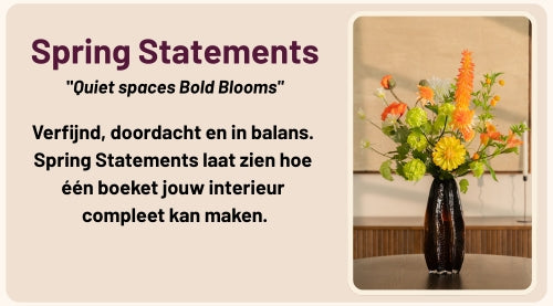 Romantic Rhythm brengt de energie van de lente samen met een vleugje romantiek. Zet het boeket in een mooie vaas en laat kleur, vorm en beweging samenkomen in een bloemstuk dat iedere ruimte laat stralen.