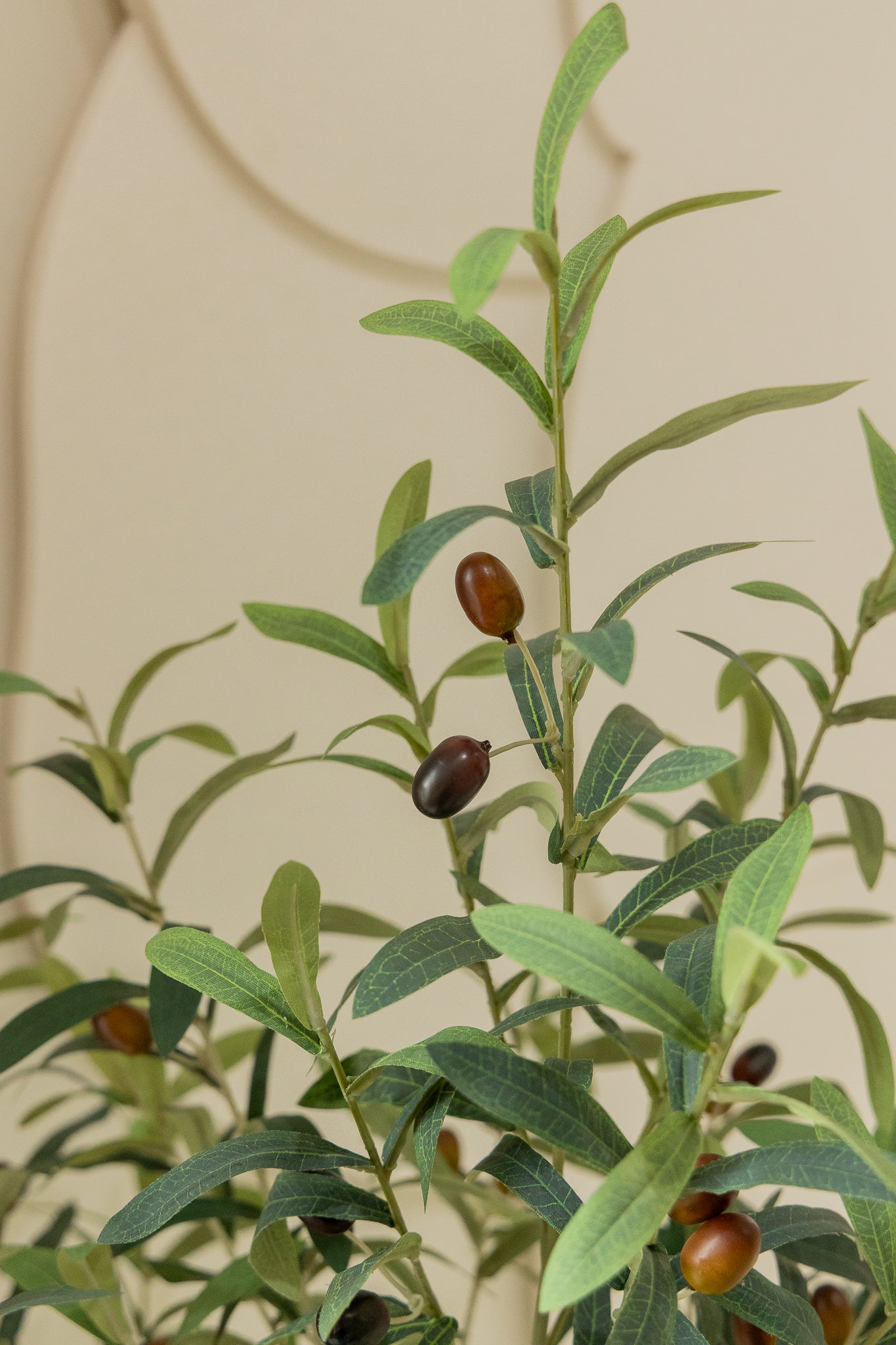 De olijfboom is zó natuurgetrouw nagemaakt dat zelfs de kleine olijven en variaties in bladkleur zorgen voor een levensechte look. Een tijdloze toevoeging die rust en elegantie brengt in elke ruimte.
