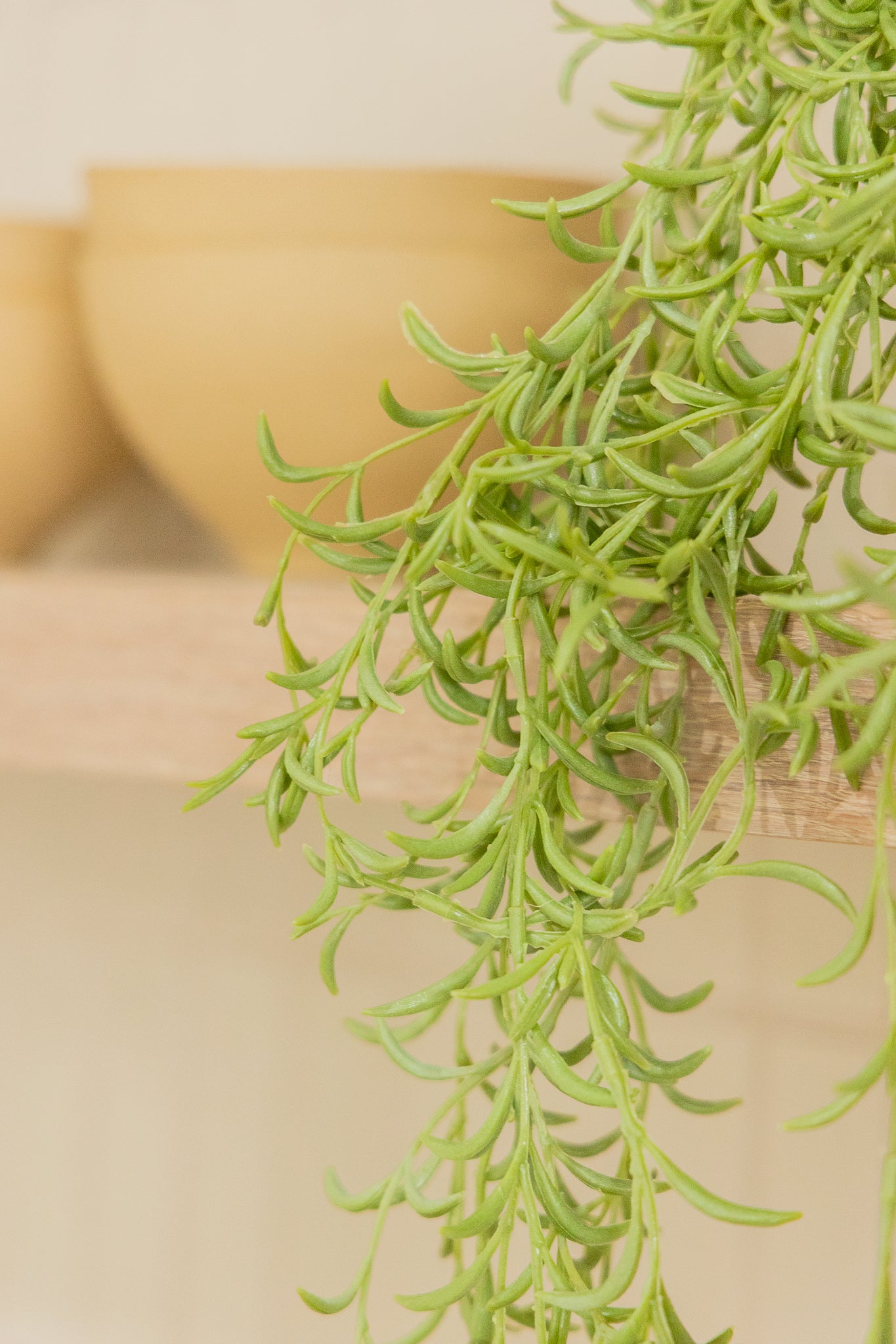 Wil je liever wat meer rust in je styling? Zet de plant dan gewoon neer; bijvoorbeeld op een hoge plank, dressoir of in een open kast. De lange, sierlijke takjes vallen mooi naar beneden en zorgen voor een zachte, natuurlijke beweging in je interieur.