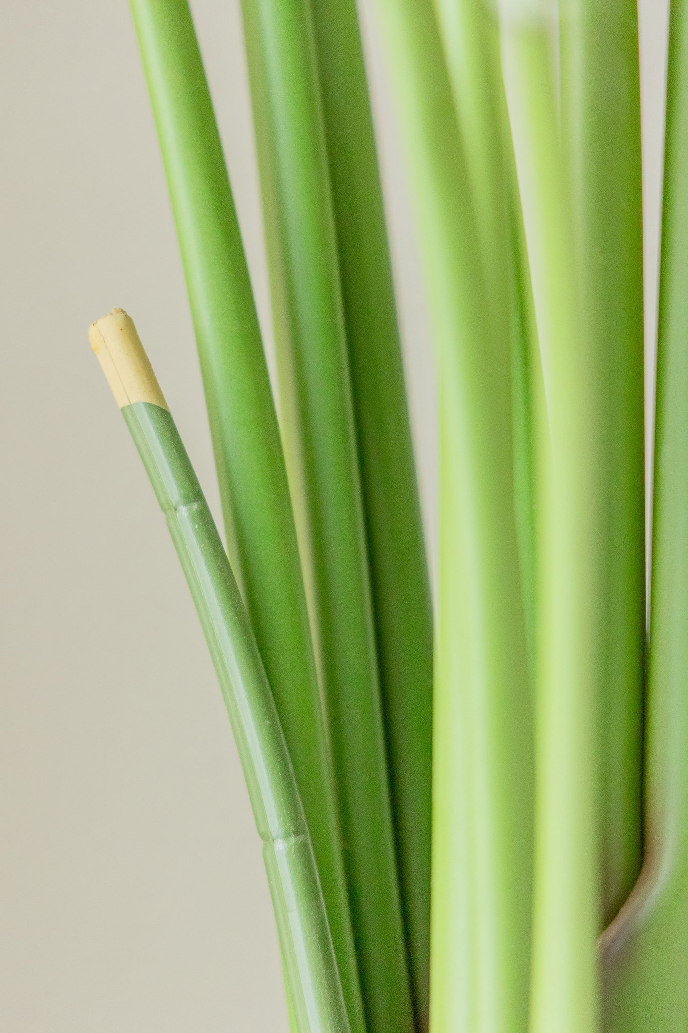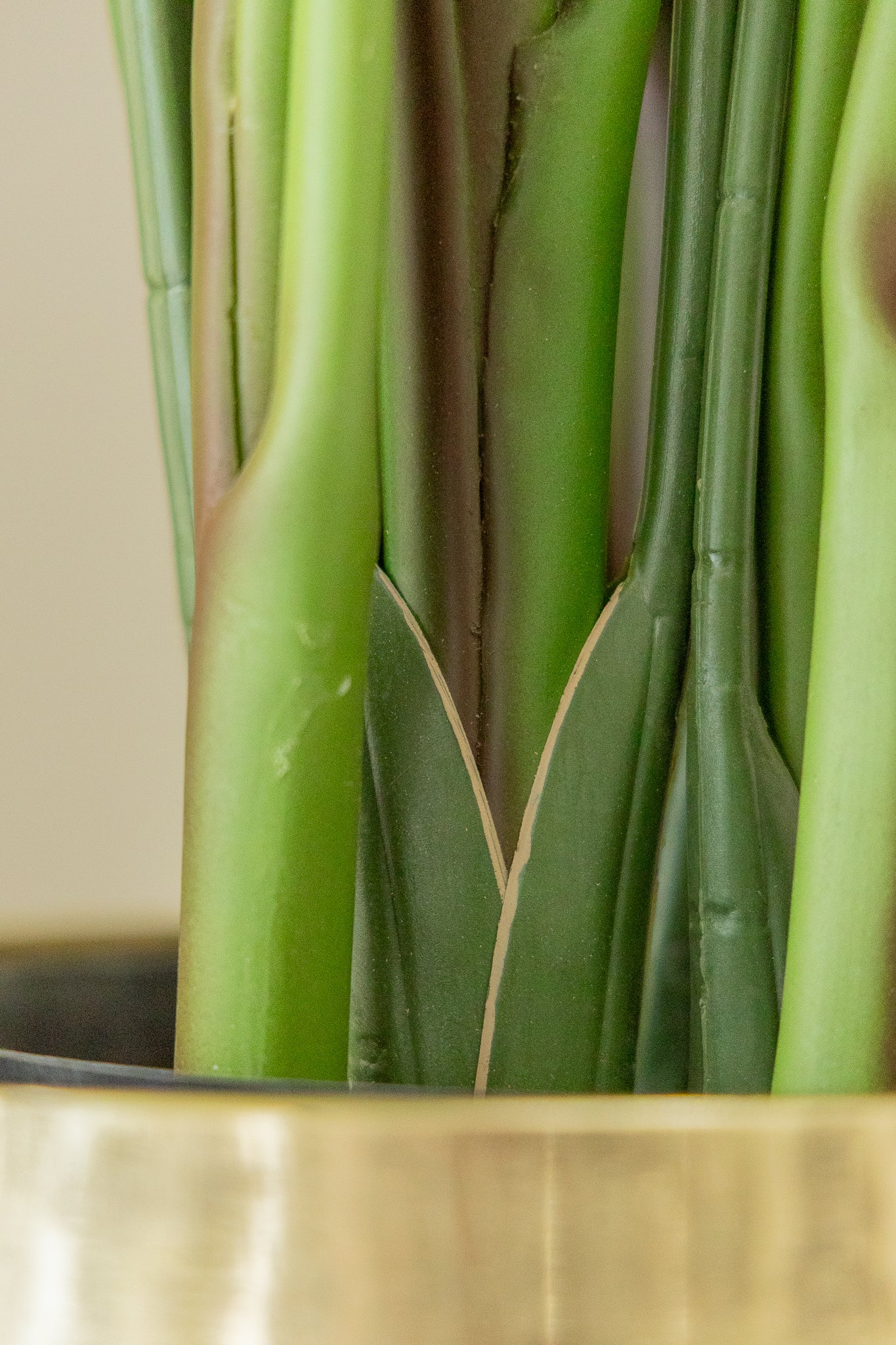 De stammen van deze kunst Strelitzia zijn tot in detail vormgegeven. De variatie in kleur, van frisgroen tot donkergroen met natuurlijke schaduwen, zorgt voor diepte en een levendige uitstraling. De gladde structuur en subtiele nerven geven de plant een stevige, realistische look. Samen met de hoogte en vorm van de stammen zorgt dit voor een elegante, tropische uitstraling die perfect past in moderne interieurs.